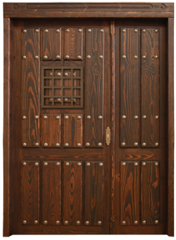 Puerta de calle rústica modelo 314 árabe, 2 fijos macizos, exterior.