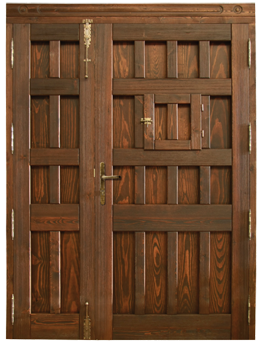 Puerta de calle rústica modelo 301 fijo (tabla machiembrada con ventanuco).