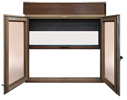 Ventana europea con persiana motorizada y mosquitera.